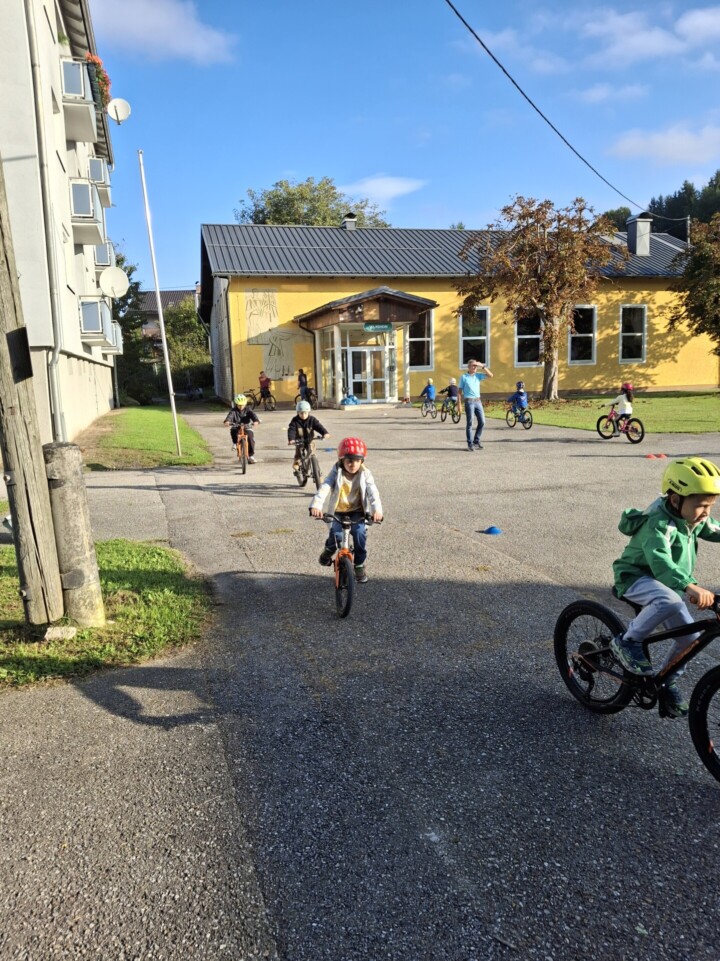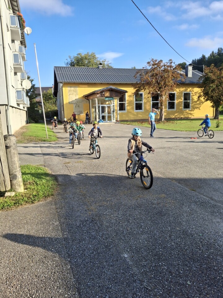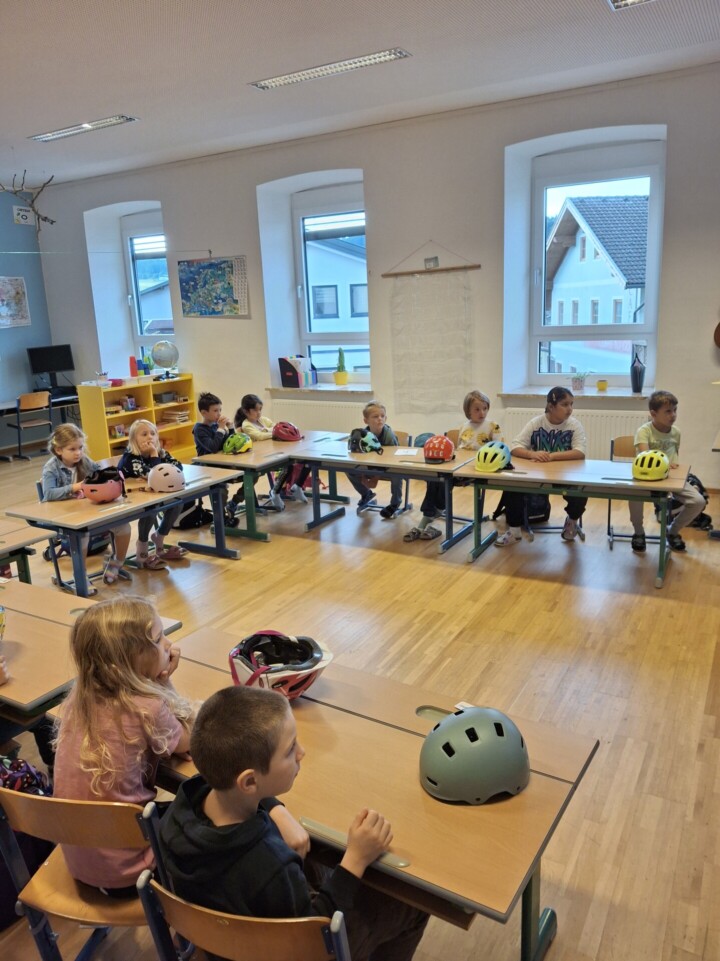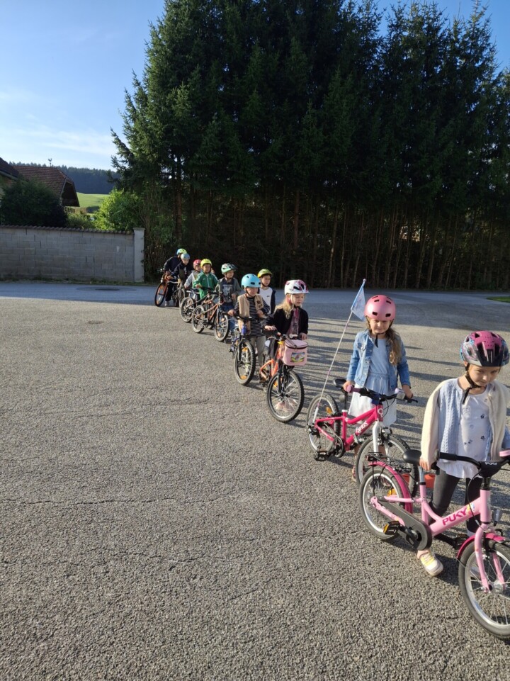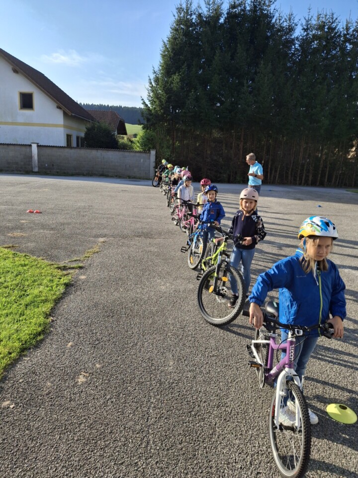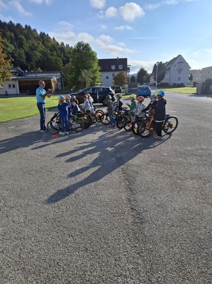 Die 1. Klasse konnte ihr Können am Fahrrad zeigen und lernte auch einiges über das richtige Aufsetzen des Helms und was ein Fahrrad alles haben sollte.