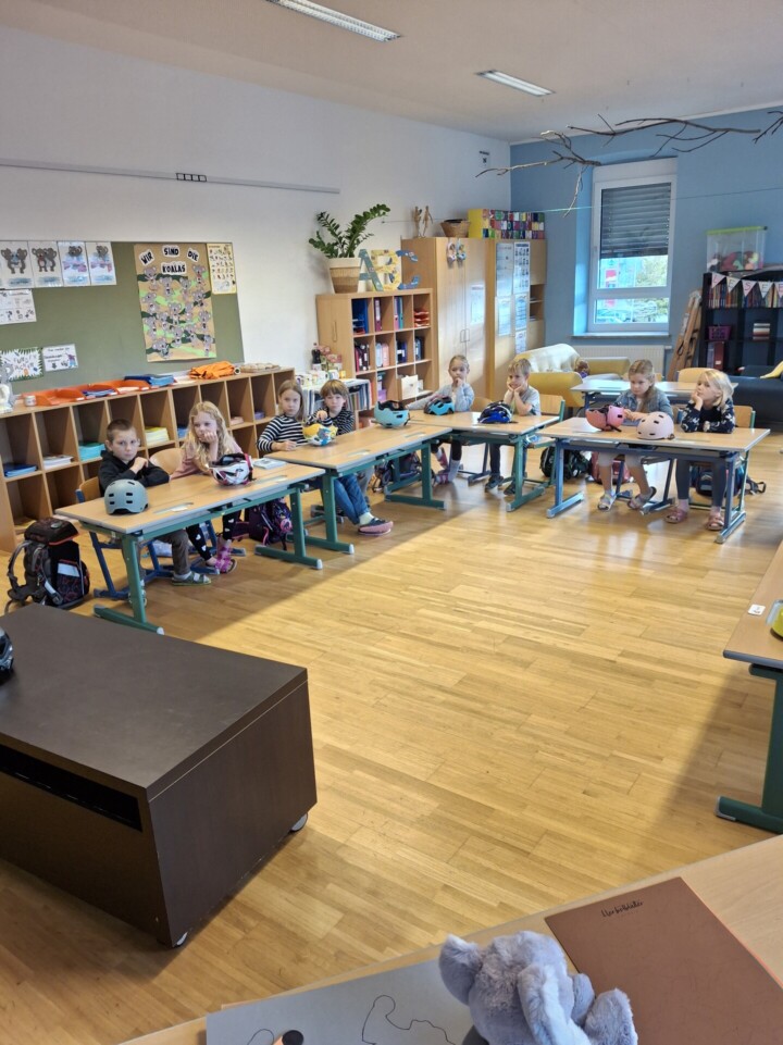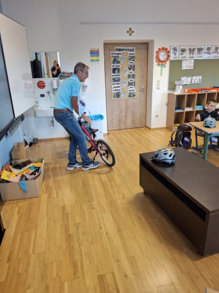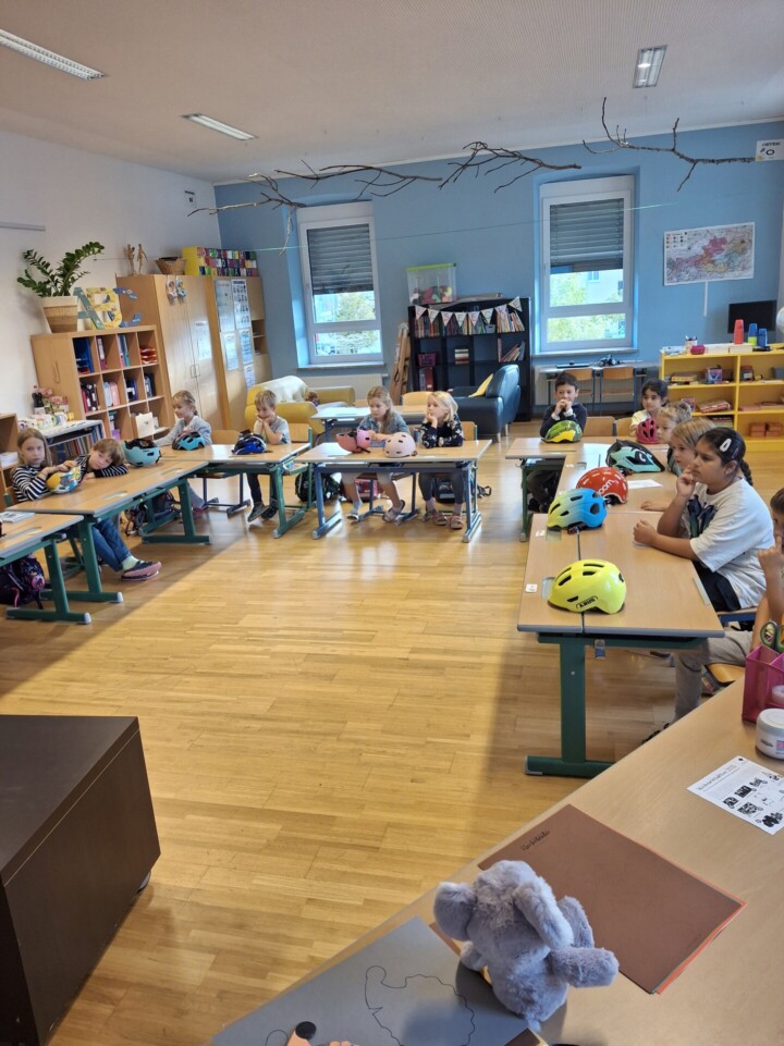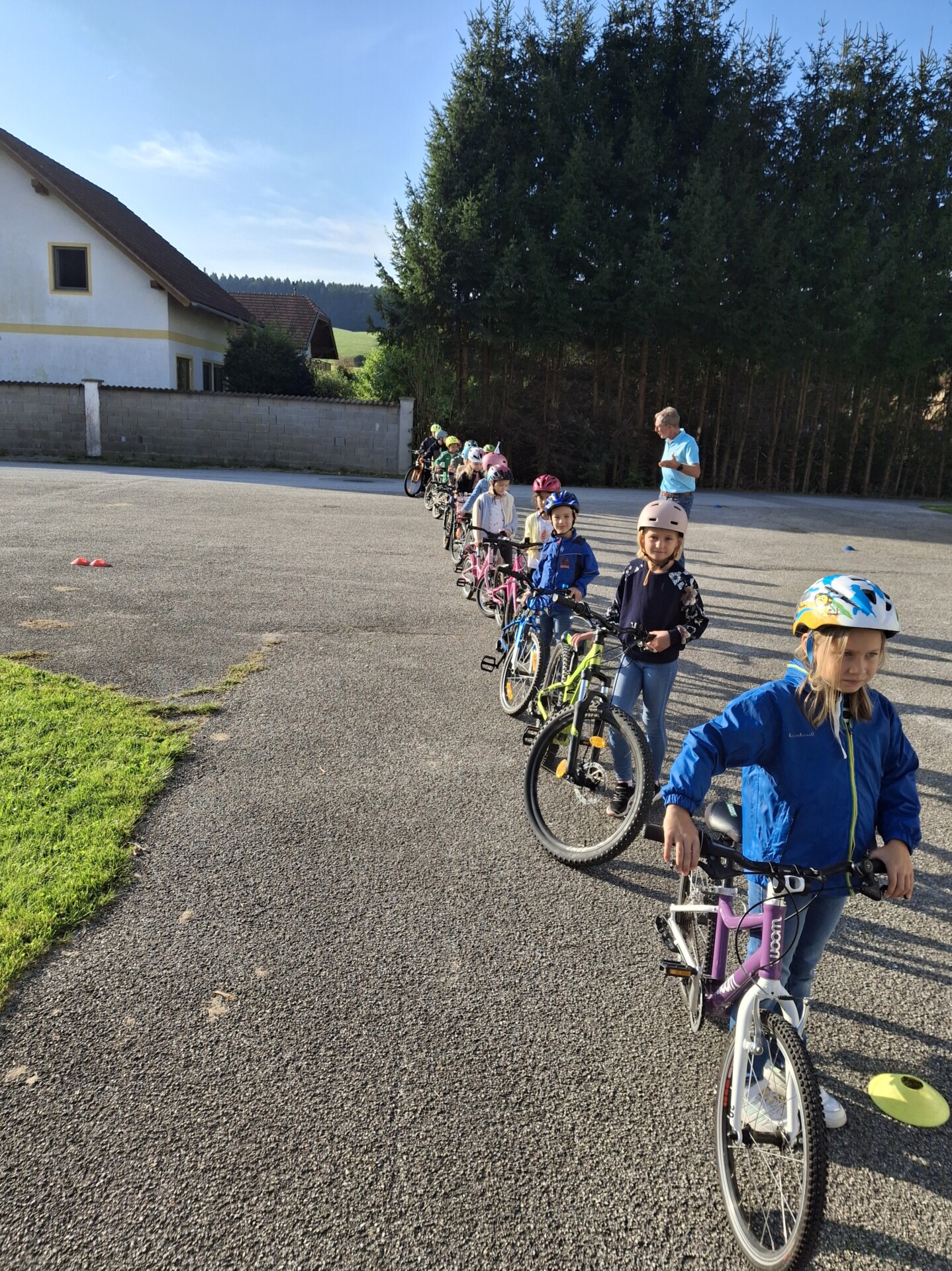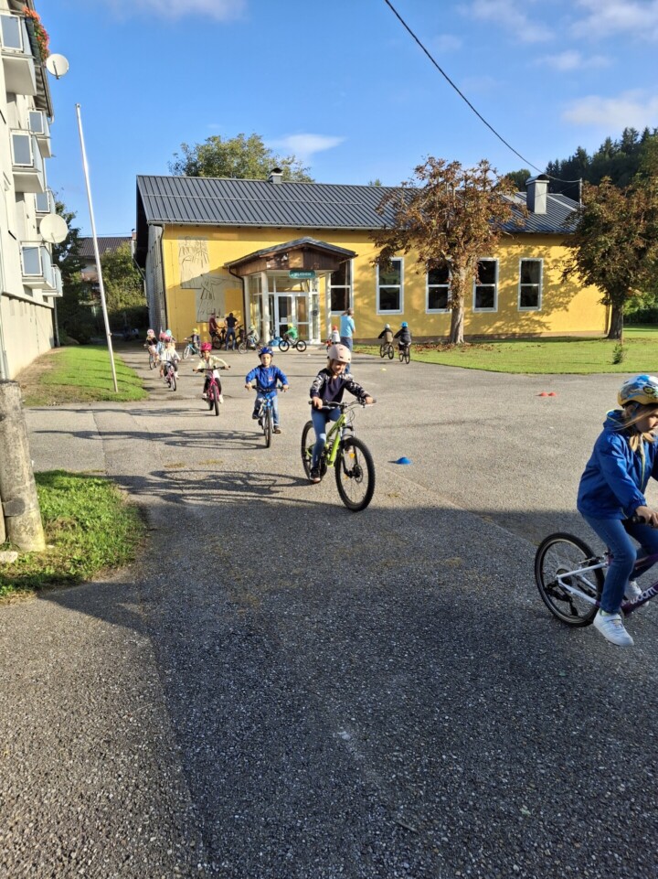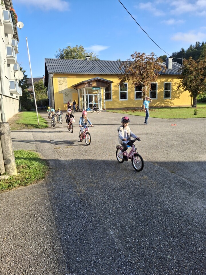 Die 1. Klasse konnte ihr Können am Fahrrad zeigen und lernte auch einiges über das richtige Aufsetzen des Helms und was ein Fahrrad alles haben sollte.